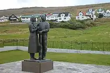 - Fletting (figurgruppe i, fyrretræ, relief 1967, Føroya Banki).