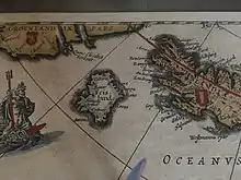 Detalje af tæppe i Kronborg. Frisland ses sydvest for Island og øst for Grønland.