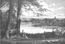 Bænkens navn hentyder til Fru Drewsen eller Johanne Amalie Drewsen (1808-1863), der var gift med papirfabrikant Michael Drewsen. Grundet hendes kælenavn "Malle" blev bænken også omtalt som "Malles Bænk". Kort tid efter deres ankomst til Silkeborg i 1844 fandt "Fruen" dette udsigtspunkt, hvorfra hun kunne se ind over fabrikken og den opvoksende by. Allerede i 1845 opsatte skovrider Joachim Godske Nyholm her en bænk. Den blev også et yndet udflugtsmål for familiens mange gæster – bl.a. H.C. Andersen, som nævner bænken i en sang til Amalie Drewsens fødselsdagsfest.[1] Stedet har desuden altid tiltrukket lokale såvel som turister. I 1996 blev udsigten genetableret, idet der blev ryddet en kile op mod det gamle udsigtspunkt, ligesom der blev lavet trapper dertil og opsat en ny bænk.