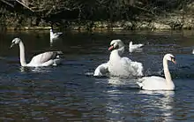 En stor del af Europas knopsvaner foretager fældningstræk til de danske farvande og forbliver her i hele vinterhalvåret