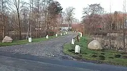 I 1748 var der en brand, hvorefter man har bygget et trefløjet stuehus i bindingsværk. Stuehuset blev fredet i 1939 for at bevare en sal med en speciel malestil. Salen er kvadratisk og i barokt snit. Både vægge og gulve er bemalet i en variant af stilen grisaille. Farven pariserblåt er brugt til bemalingen, hvorved salen er mørk og har en speciel stemning.
