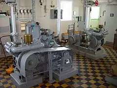 Linsens omdrejende bevægelse kunne som regel ske ved hjælp af et urværk, der drives af et lod, der vandrer op og ned gennem tårnet.[10][12] Værket er ved en tandhjulsforbindelse i indgreb med en tandring på det omdrejende stativ, der glider over friktionsruller på en fast bane. I nyere fyr, særlig i lynfyrene, der kræver stor omdrejningshastighed, søges friktionen bragt ned til et minimum ved at lade apparatet bæres af en kvægsølvsflyder.[13] Som regulator anvendes vingeregulatoren, der består af et sæt vinger, der påvirkes af svingende kugler; går værket for hurtig, svinges kuglerne ud og stiller vingerne mere lodret, hvorved de frembringer mere modstand med bevægelsen og sagtner gangen, eller der anvendes en friktionsregulator, hvor kuglernes større eller mindre udsvingning forøger eller formindsker friktionen. Disse regulatorer giver en aldeles jævn gang, om end mindre nøjagtig end penduler og andre regulatorer, der imidlertid er uanvendelige på grund af den stødende gang, de meddeler værket. I små blinkfyr, anbragte på steder, hvor der ikke kan holdes vagt, kunne rotationsværket drives af en lille elektrisk motor, der kunne holdes gående i flere måneder ved hjælp af tørre elementer eller ved hjælp af den til fyret anvendte gas.[14][15]