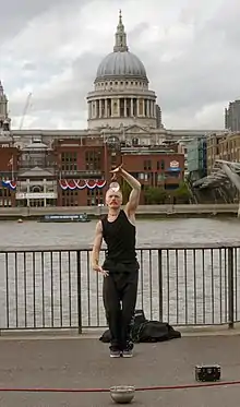 Gadeartist foran Tate Modern med Saint Paul's Cathedral som baggrund.
