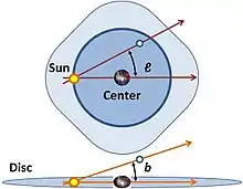 Galaktisk længde ℓ – vinklen, målt langs galaktisk ækvator, mellem objektet og den galaktiske nul-længdegrad. Mao. den galaktiske længde er næsten identisk med den galaktiske ækvatorialvinkel mellem objektet og Sagittarius A*. Galaktisk længde øges i samme retning som rektascensionen, men angives i grader i intervallet: [0°;360°[