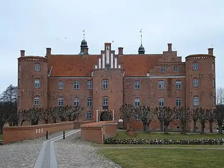 ![]() Hovedbygningen på Gammel Estrup hvor Danmarks Herregårdsmuseum holder til. | |