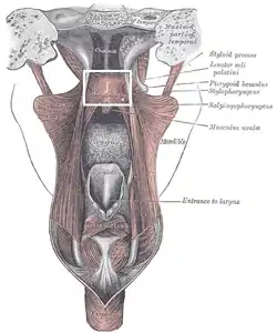 Musculus levator veli palatini | Løfter den bløde gane. | Løber fra pars petrosa af tindingebenet og hæfter sig til oversiden af den bløde ganes aponeurose. |