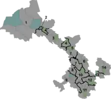 Gansu er inddelt i tolv bypræfekturer og to autonome præfekturer (tallene i parrentes svarer til kortet: