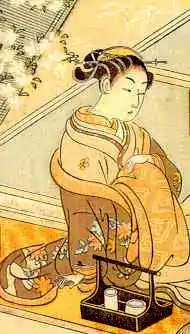 (se herunder) Prostituerede binder deres obi-bælte foran på kimonoen, mens geisha har obien bundet på ryggen. Ægte geisha, der ikke involverer sig i prostitution, havde ofte den luksus at have en påklæder til at hjælpe sig med kimonoen, der består af mange lag ”kimono” og underklæder, samt en obi, der er et bredt silkebælte der kan bindes i imponerende knuder på ryggen. Påklædningen kunne tage over en time, selv med professionel hjælp. Prostituerede derimod måtte have kimonoen og obien af og på mange gange i løbet af en aften, så deres knude var mindre kompliceret og blev bundet foran for at gøre af- og påklædningen lettere.