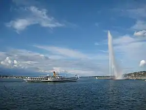 Hjuldamper på søen nær Geneves kendte springvand Jet d'Eau