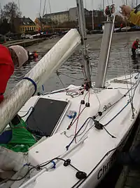 Gennakeren (grøn) sidder klar i lugen på en CB66'er