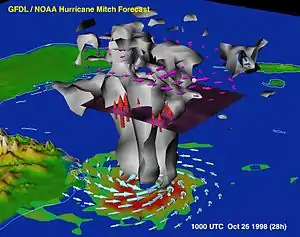 Modelprognose af Orkanen Mitch, genereret af Geophysical Fluid Dynamics Laboratory.