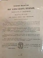 Tsar Aleksandr 2.'s manifest om Storfyrst Georgij Aleksandrovitjs fødsel.