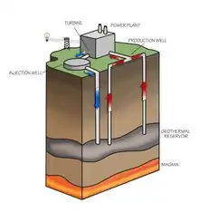 Varme fra jordens indre strømmer hele tiden ud mod jordoverfladen i en mængde på 47 TeraWatt.[1] Derved opvarmes blandt andet vandførende lag i undergrunden, hvorfra geotermisk energi kan udvindes i form af damp eller varmt vand. Geotermisk energi kan udnyttes med et geotermisk kraftværk, som producerer el hvis damptemperaturen er høj nok; over 150 °C.[1]