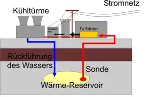 For at det kan lade sig gøre at pumpe varmt vand gennem undergrunden, skal denne være porøs, så vandet kan ledes igennem, fra den ene boring til den anden. Derfor er det typisk områder, som består af sandsten, man er på jagt efter. En anden detajle er, at man skal skal ret dybt ned, hvis man vil have kogende vand (damp), som kan drive en turbine, dette er ideelt da man på denne måde kan få både el og fjernvarme fra systemet. Tommelfingerreglen siger, cirka 30 grader for hver kilometer. Så man skal ned i omkring 3,5-4 kilometers dybde for at kunne få damp. Det er en ganske stor udfordring at få placeret brøndene i denne forholdsvis store dybde, men det kan faktisk lade sig gøre med det selv samme udstyr, som i dag bruges til olieboringer i eksempelvis Nordsøen.