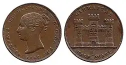 ![]() Gibraltar-mønten, udstedt i 1842  | |
