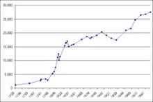 | 1993 | 28.100 | 518 | 275 | 243 | 18,5 | 9,8 | 8,7 |