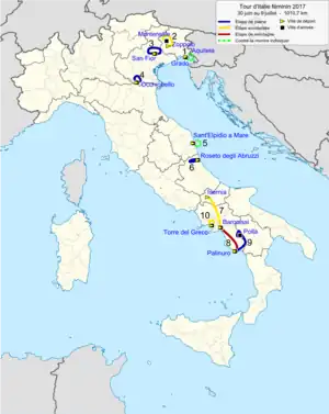 | 9 | 8. juli | Palinuro til Polla | 116,8 km[4] | Flad | ||