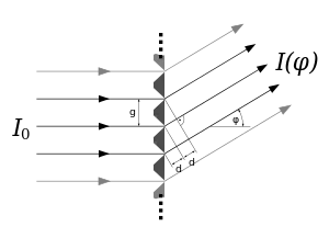 En plan lysbølge i fase rammer et optisk gitter, som står vinkelret til lysstrålen. På den anden side er en skærm opstillet parallelt til gitteret, hvor lyset nu danner adskillige punkter på række. Punkt 0 ligger i lysbølgens oprindelige bevægelsesretning, punktet tættest på er punkt 1 og så fremdeles. Punktet betegnes som ordenen. Punkt 0, punkt og det optiske gitter danner en trekant, og vinklen ved det optiske gitter kan kaldes for , og afstanden mellem to spalter i gitteret, gitterkonstanten, kaldes for . Jf. gitterligningen gælder: