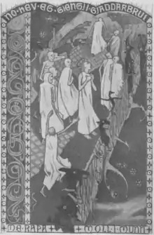 (= Kommer jeg mig til Gjallerbroen, hænger så højt i vinde, var fast med kroge slået, og nagle ved hver en tinde.)
