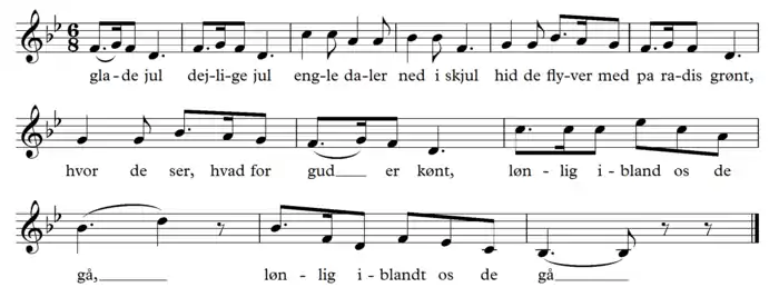 Den danske komponist Carl Nielsen komponerede i 1905 en variation over sangen, som hedder "Drømmen om Glade Jul". [8] Denne er bl.a. indspillet af Christina Bjørkøe. [9]