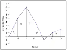 Graf der beskriver blodets indhold af blodsukker efter et måltid.