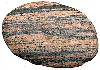 Gnejs er en stribet eller båndet grundfjeldsbjergart. Striber og bånd skyldes deformation. Det viser, at gnejs er en metamorf bjergart, som oprindelig bestod af andre, primære bjergarter eller protolither. Metamorfosen er en følge af en bjergkædefoldning (orogenese), der har påvirket de primære bjergarter mekanisk (udtværing, foldning mv.) foruden høj temperatur og/eller tryk. Det færdige produkt får herved sammen med sin nye struktur oftest et nyt mineralselskab af feldspat, kvarts, lidt glimmer og andre mørke mineraler (granitisk sammensætning).
