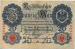 ![]() Tysk 20-markseddel fra 1914  | |