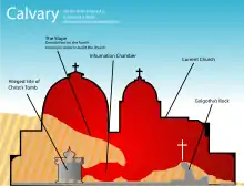 Selvom det siden det sjette århundrede har været antaget, at Golgata var en høj, så kaldes det ifølge evangelierne blot et sted. At stedet kaldes hovedskal er nævnt i alle fire beretninger i de kristne kanoniske evangelier: