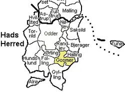 ![]() Gosmer Sogn, Århus Amt 55.9287°N 10.1929°Ø | |