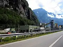 Forgrening: Multifunktionsstationen Faido, med tunnelrørene i baggrunden.