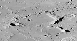 En catena, der er en kæde af små krateret, danner en linje som løber fra den sydlige del af kraterbunden og i sydvestlig retning.