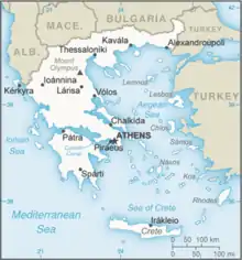 Grækenlands hovedstad er Athen. Af andre byer kan nævnes Thessaloniki i den nordlige del af Grækenland samt Piræus ved Athen.