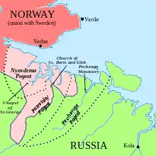 I 1920 blev Petsamo-området på russisk side overdraget til Finland ved Freden i Tartu, og Norge havde ikke længere grænse mod Rusland (Sovjetunionen).