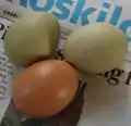 Grønlægger æg og et ISA Warren æg fra Roskilde
