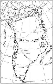 | 1902-1904 | L. Mylius-Erichsen | Danmark | Vestgrønland | "Den danske litterære Ekspedition" til Godhavn, Upernavik], Melville-Bugten og Kap York[16] |