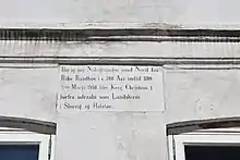 I dag ses en marmorplade på Grønnegade 4, der beretter om datidens rådhus. På pladen står: Her og på nabogrunden mod nord lå Ribe Rådhus i c. 300 år indtil 1709. 2den marts 1460 blev Kong Christian I herfra udråbt som landsherre i Slesvig og Holsten.
