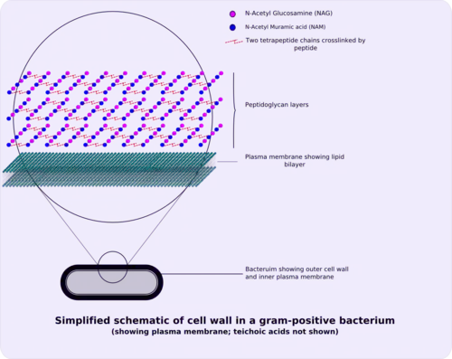 - En meget tyk cellevæg, bestående af peptido-glycan