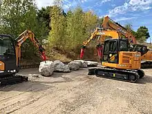 Til kategorien gravemaskiner hører også minigraveren. Det er et holdningsspørgsmål hvor grænsen går; maskinens funktion er den samme, blot i anden målestok.
