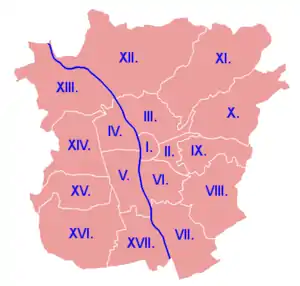 Byen er inddelt i 17 bydele (ty. Stadtbezirk). Disse er: