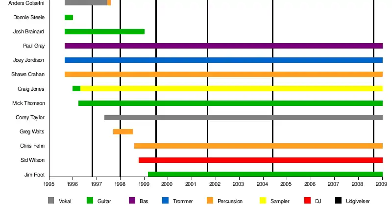 - Joey Jordison er et originalt medlem fra bandets begyndelse i 1995.[1]
