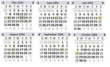 | Måned | Antal dage | Dag i året- |