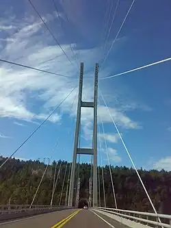 Broen er bygget med en overbygning, der består af sektioner af stål, med dække af beton, støbt på stedet. Broen har kun et tårn og et hovedspænd på 305 meter. Broens totallængde er 608 meter, og gennemsejlingshøjden er 50 meter. Skråstagene er opdelt i 21 kabelpar, med længde fra 84 til 287 meter. Totalt har broen 7 spænd.