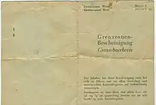 Størrelsen på grenseboerbeviset var (ca.): H=14,5cm x B=10,5cm.