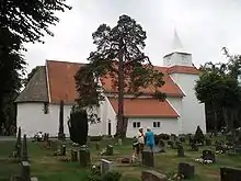 - Landvik kirke, vest for Grimstad, er en korskirke i træ fra 1824