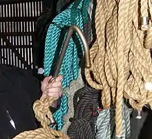 • leysakast og fastakast (løse sten eller faste sten, dvs. en sten bundet i et reb), disse kan bruges til at skræmme hvalerne til at svømme i en bestemt retning, men det var mest før i tiden, dengang man brugte robåde. Nogle både har dog endnu fastakast ombord på bådene.[9]