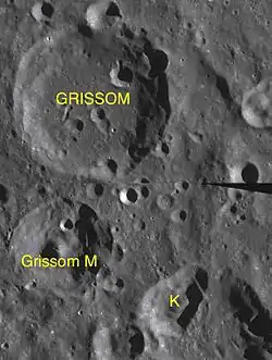 De kratere, som kaldes satellitter, er små kratere beliggende i eller nær hovedkrateret. Deres dannelse er sædvanligvis sket uafhængigt af dette, men de får samme navn som hovedkrateret med tilføjelse af et stort bogstav. På kort over Månen er det en konvention at identificere dem ved at placere dette bogstav på den side af satellitkraterets midte, som ligger nærmest hovedkrateret.[9][10][11] Grissomkrateret har følgende satellitkratere:
