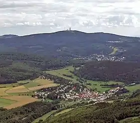 ![]() Großer Feldberg set fra nord; til venstre i baggrunden ligger bjerget Altkönig (798 m) | |
