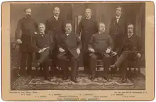 Bagest, fra venstre mod højre: William F. Vilas, William C. Whitney, William C. Endicott, Augustus H. Garland