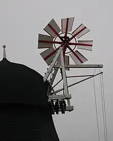 Vindmøllen er en 17 meter høj hollandsk vindmølle med jordomgang, bygget på et fundament af kampesten. Den er bygget på en forhøjning, hvor vestenvinden får godt fat, og møllen kunne derfor male korn, hvis vandmøllen manglede vand om sommeren eller var frosset fast om vinteren. Overmøllen er af træ beklædt med spån, og den har en løgformet hat, som er beklædt med pap. Den har et vindfang på 37 alen (ca. 23 meter), og krøjer med vindrose. Vindmøllen er selvsvikkende. Den er udstyret med tre kværne og en grubbekværn. Grubbe vindmølle var i drift som forretning med korn og foderstof indtil 1960. I dag males der regelmæssigt korn i vandmøllen, og når forholdene er til det også i vindmøllen. Begge er i privat eje, men kan ses i funktion når omvisninger arrangeres. Vindmøllen er fredet.
