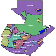 I Guatamala tales 21 mayasprog, især i landdistrikterne, samt to ikke-maya indianske sprog: xinca, som er hjemmehørende i landet, og garifuna, et arawakan-sprog, der tales på den caribiske kyst. Ifølge sprogloven af 2003 er disse sprog anerkendte som mindretalssprog.[19] Xinca- og garifuna-sprogene er truede med under 100 talere.